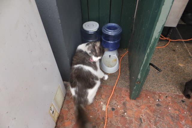 そうかここは、猫ちゃんダイニング。食べ終わったあとは、毛づくろいが忙しい。