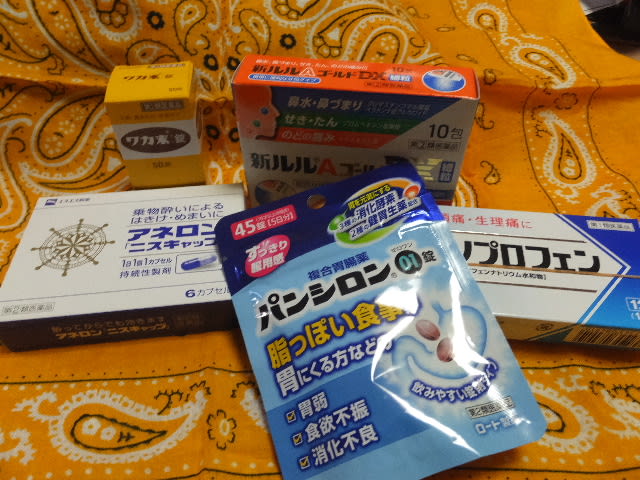 胃腸薬二種類、風邪薬、ロキソニン、酔い止めの妙薬。