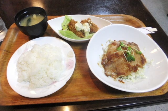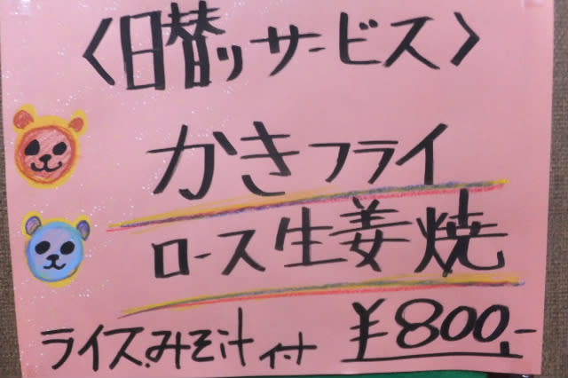 これは、豚ロースしょうが焼きが主、それに副菜に、「カキフライ二個」そんな感じ。