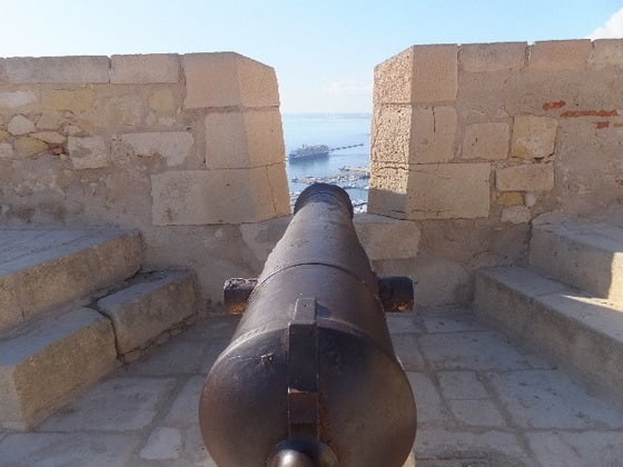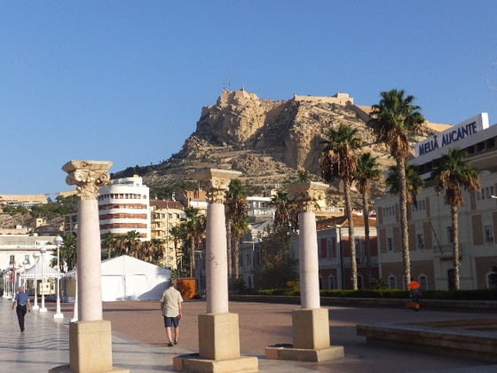 ビーチ沿いに、岩山「サンタバルバラ城」上るエレベーターがあり、それに乗り、山頂まで行く2.7€也。