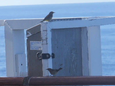 夕方、先ずの発見は、船の手摺を見ると、なんと小鳥がいる。