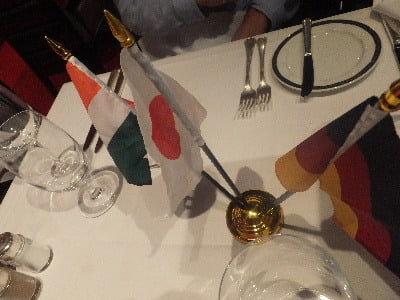 最後のメインダイニング、我々のテーブルには、日本国旗がひるがえる。