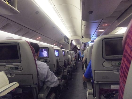 今回恐怖の14時間フライト、いつも寝られない。