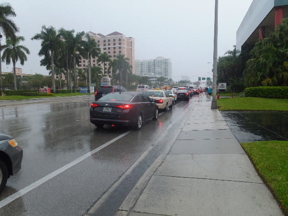 したがって、クルーズの港「エバーグレース港」に続く道は、車の大渋滞となる。