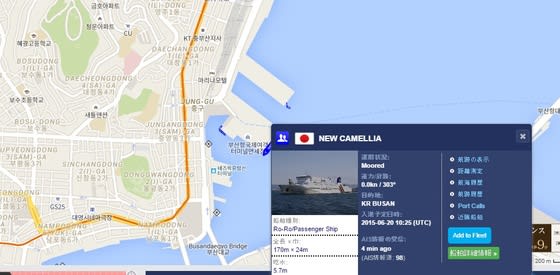 上記画像は、本日6月20日、午後9時前頃の、韓国「釜山」に停泊している。