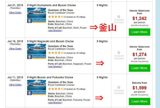 今日、これも先ほど、クルーズサイトより「ロイヤルカリビアン」のアジアクルーズを