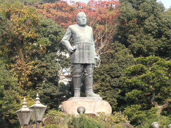 ⑦雨の中霞んでいましたが、晴れの日の「西郷銅像」のたくましい姿。
