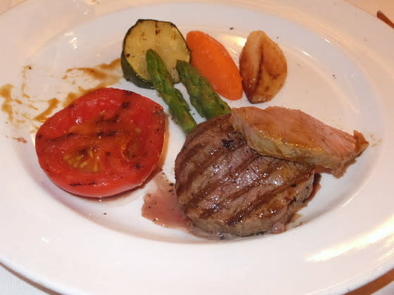 プリンセスは、日本発着では、ステーキ量が少ない。