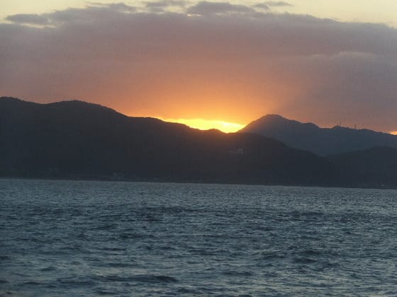 6月28日、神戸を出港したダイヤモンドプリンセスは、夕闇の前の四国の夕陽を