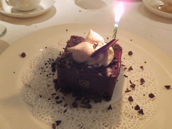 なんと蝋燭は、一本。ちょっと小さいが、まあウエイターの歌の演奏つきだ。