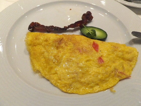 玉ねぎ、トマト、チーズのオムレツと、一切れだけカリカリベーコンを頼んだ。