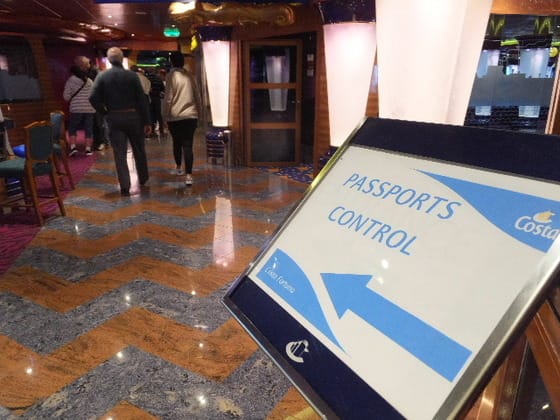 さて今日は、イタリアの最終寄港地で、イスラエルの入国審査官が乗船。