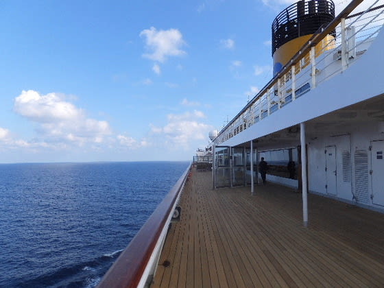 船は、イタリアを離れ、ギリシャに向かいゆっくり航行している。右舷からも左舷からも、陸地は見えず地中海の大海をゆっくり進む。