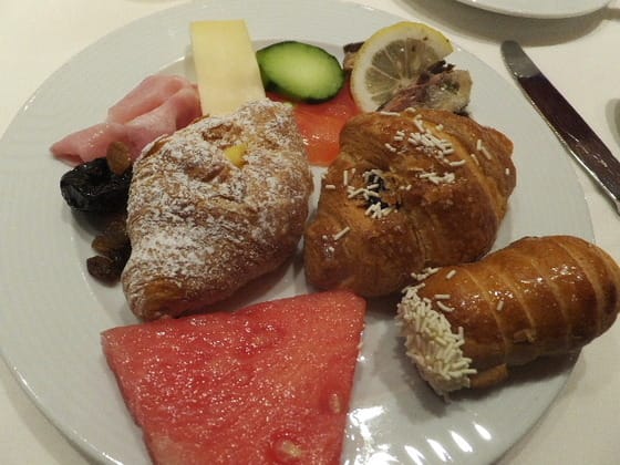 さてビュフェは9階にあり、行けば混雑。イタリア人の朝食である。