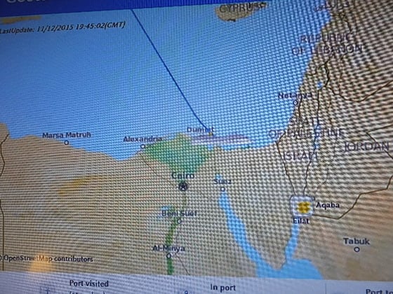 船はトルコのマルマリスを出港して、1日かけてエジプトのスエズ運河の手前に到着した。