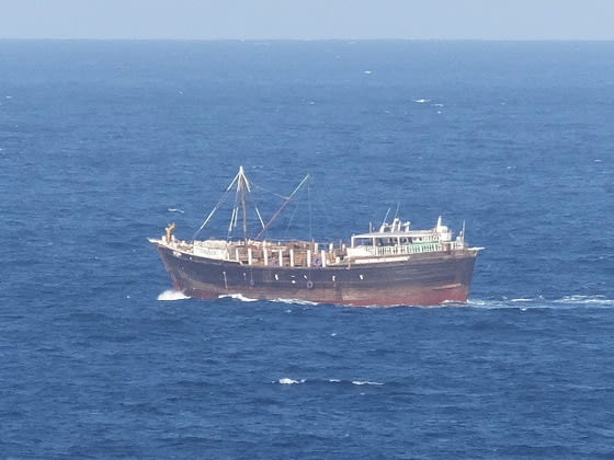 本船は安全海域通過の為、ソマリア沖の速度より減速して安心して航行している。