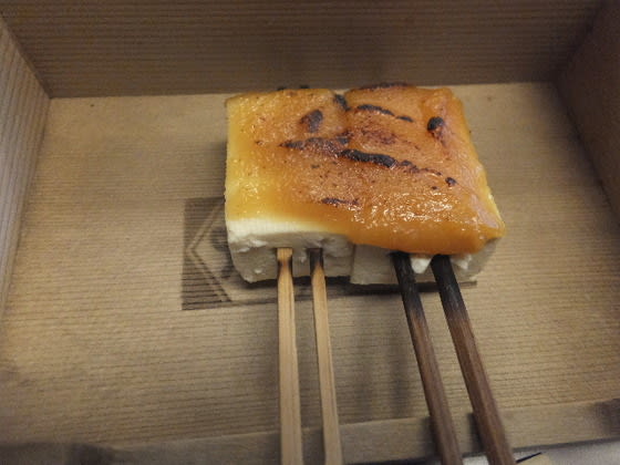 豆腐田楽、やいた固めの豆腐の上に、白みその田楽。