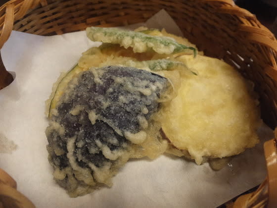 「季節の野菜の天ぷら」、「味噌豆腐田楽」。