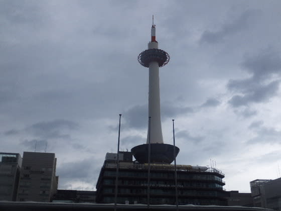 いそぎ新幹線にて、東京に戻る事にした。京都タワーの空も暗い。