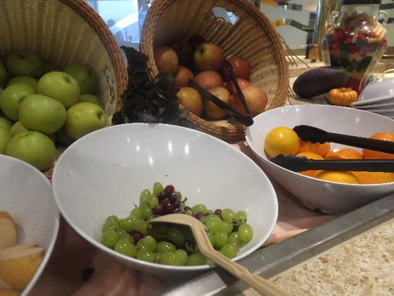 Aria様 一流ホテルよりは質が落ちますが、品目はたいしたものです。ドライフルーツや シロップ漬け、リンゴの煮たものなどもあります。海外だと、ライチやマンゴスチン等 なかなか国内では食べられないフルーツもでます。そちらも楽しみです。