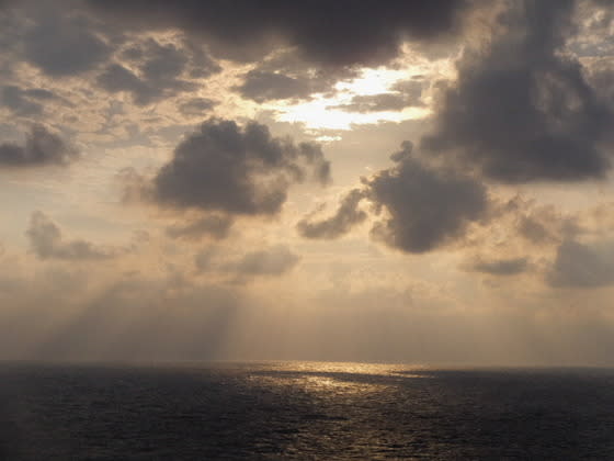 船の楽しみは、遷り変る景色と思う。雲と光は、時々アッとする美しに出会う。