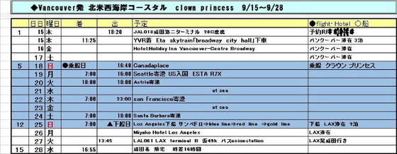 ◆明日出発ようやく船の客室判明:再び「緑のCanadaより北米LAXへ」Crown Princess北米西海岸の旅