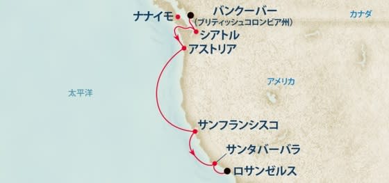 前回より寄港地は増えている。今回初寄港地が、オレゴン州の「アストリア」とロスに近い「サンタバーバラ」である。