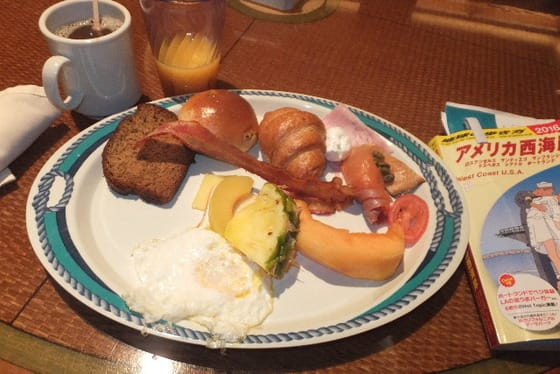 本日、初の朝食 ホテルよりましだ。明日はもっと充実させる。