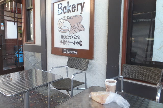 朝は、リトル東京のパン屋さんで、コーヒーと、パン二つ。5ドル。