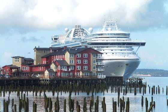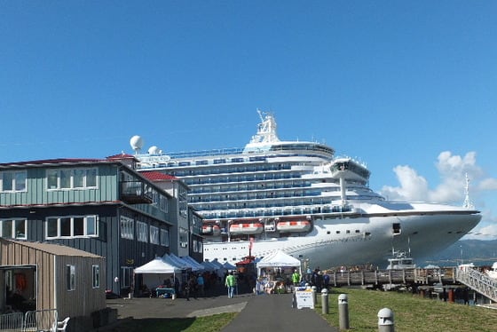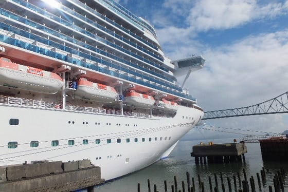 9月20日航海3日目に、クラウンプリンセスは、アメリカのオレゴン州「アストリア」に寄港する。しかしここアストリアには、そんな大きな桟橋はない。