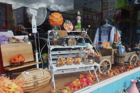 Hallowe'enが来月て゜かぼちゃが飾られている。