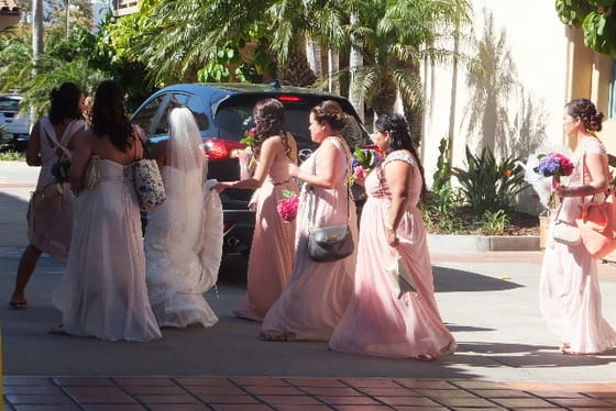 しばらく海を見ていると、教会のそばで、結婚式の花嫁行列に出くわした。