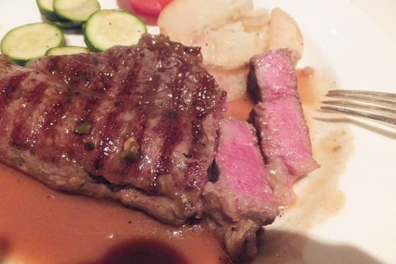 最後の夜はいつも、ニューヨークカットステーキ 焼き方レア。