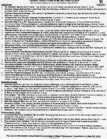 バンクーバーの観光地の乗り換え案内がある。