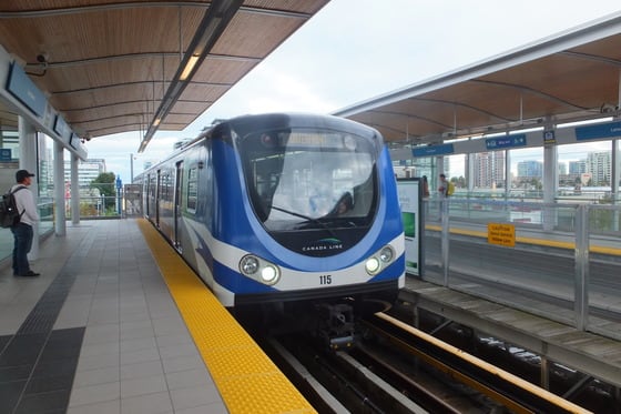 さて、ここからはツアー等の人は、お迎えの車が来る。またはお金のある方はタクシーとなるが、一般的には、とても便利なカナダの公共交通地下鉄のスカイトレイン「カナダライン」に乗車して目的地に向かうのが、安くてとても便利。