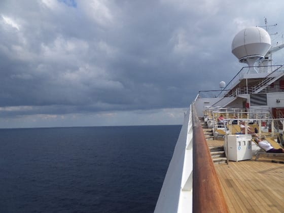 ![](embed:photo/79195) なんか1時間前から、雨止み、波も静か、 明日到着予定が、もう伊豆の大島沖縄か?、 あと四時間くらいで横浜大桟橋。 台湾から 22ノット高速航行。もう大桟橋は近い。 大画面液晶ビジョンの前にも人はいな