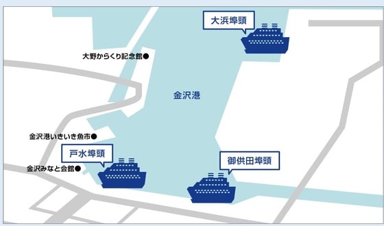 シャトルバス:あり(ふ頭 ⇔ 金沢駅:往復500円)
