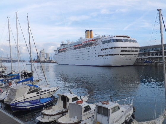 ※画像は、イタリア サボーナのコスタのバースに停泊する「コスタ ネオクラシック」