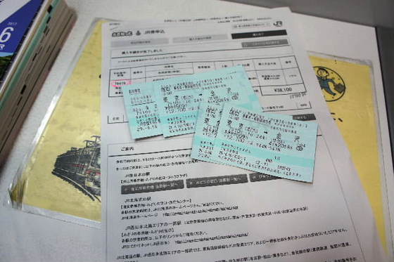 切符を、みどりの窓口の、券売機端末にて受領した。
