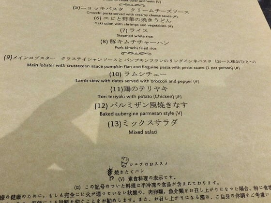 もしこの日、ある日本人が、上記メニューの中から、この中から日本食が好きなので