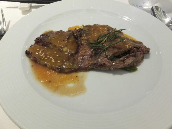 初日のメインはプライムリブ、二日目はロブスター、そしてこの日、あっ今日も牛肉があると思い、(9)牛肉味噌焼きを選んだ。