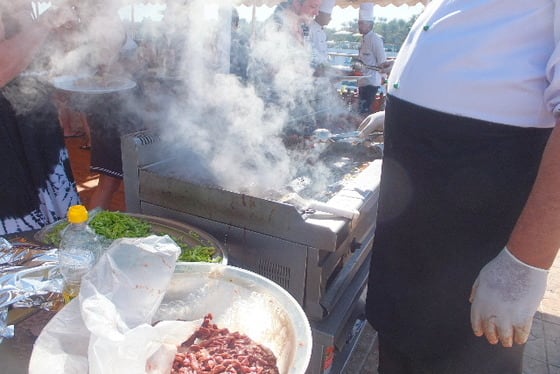 ランチは遅く、午後二時頃、最上階のサンデッキでのバーヴェキューランチ。
