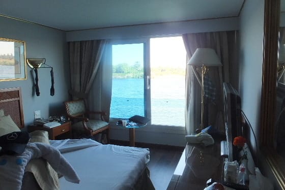 自分のキャビンよりナイルの眺めを楽しむ。