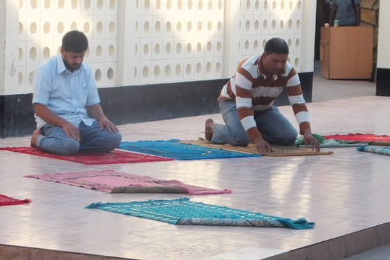 日に何度もある「お祈りの時間、メッカの方角を向きお祈りをする。