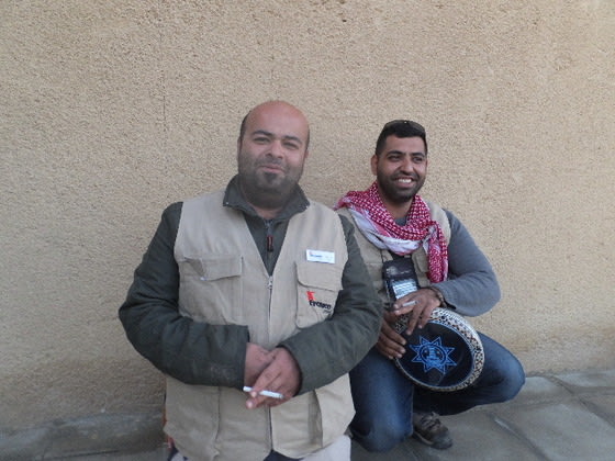 ヨルダンのアカバより、ペトラ遺跡に行く船のツアーで、アラブの二人のガイドが