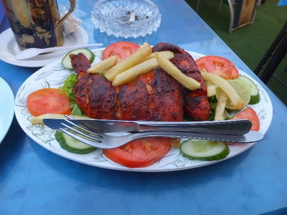 鶏肉もいただいたが、本当に固く、また辛かった。