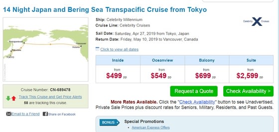 皆さま、船で太平洋横断いかがですか?いやいやいや安い!セレブリティーmillennium!