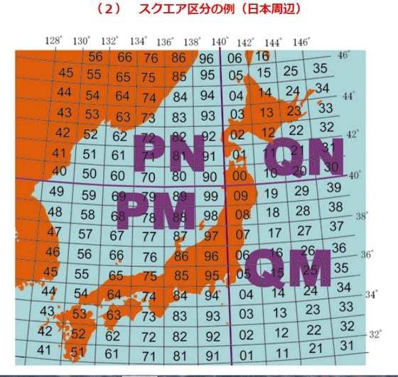 日本近海の船の航路は PM95⇒94⇒QM04,⇒15、16,17,18,19と移動する事になる。