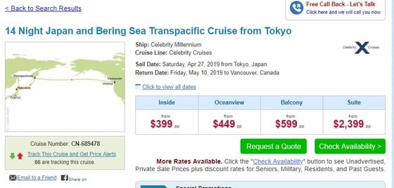 日本東京発で日本人にあまり関係のないクルーズ。