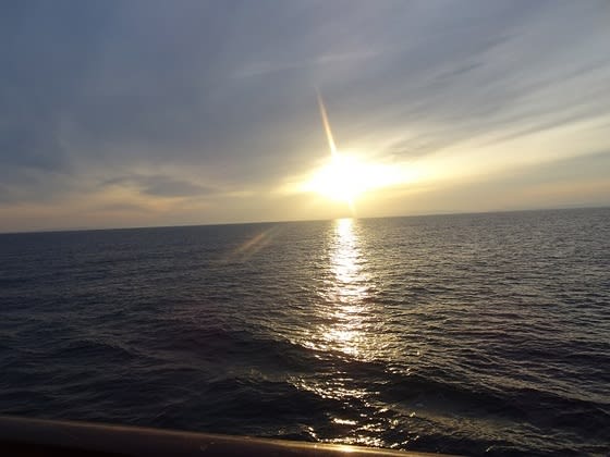 明日は北海道函館に寄港。今日は晴れの1日であったが、確実に気温は下がり、風は冷たい。